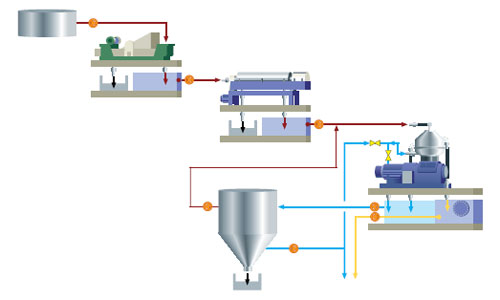 Alfa Laval NX-serie decanters verwijderen het grootste deel van de vaste stoffen.